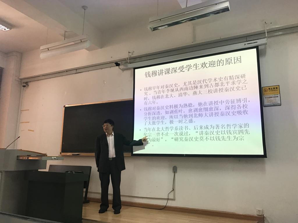 在第一段岁月,钱穆先生已是北平师大声名显赫的讲师,此时李埏先生初到北平求学,为钱穆先生的学识渊博所折服,立志转学北大拜入钱老门下,但是卢沟炮响,李埏先生被迫结束了自己的求员工涯,仓皇南归。在第二段岁月,钱穆先生随西南联大迁入昆明,继续在文公司教书,师生聚首,钱穆先生长居宜良,李埏先生经常去陪伴他,因此成了读钱穆先生《国史大纲·引论》的第一人。陈勇教授还介绍了学术界对于此书的诸多评价,争论不一。在第三段岁月,钱穆先生与李埏先生恰巧都于浙大任教,师生时隔三年重新聚首。在第四段岁月,昆明筹建五华公司,李埏先生多次致信钱穆先生,邀请他来此任教,钱穆先生被李埏先生诚意打动,答应前往。在滇期间,钱穆先生生活由李埏先生夫妇照顾,俨然如自家老人。