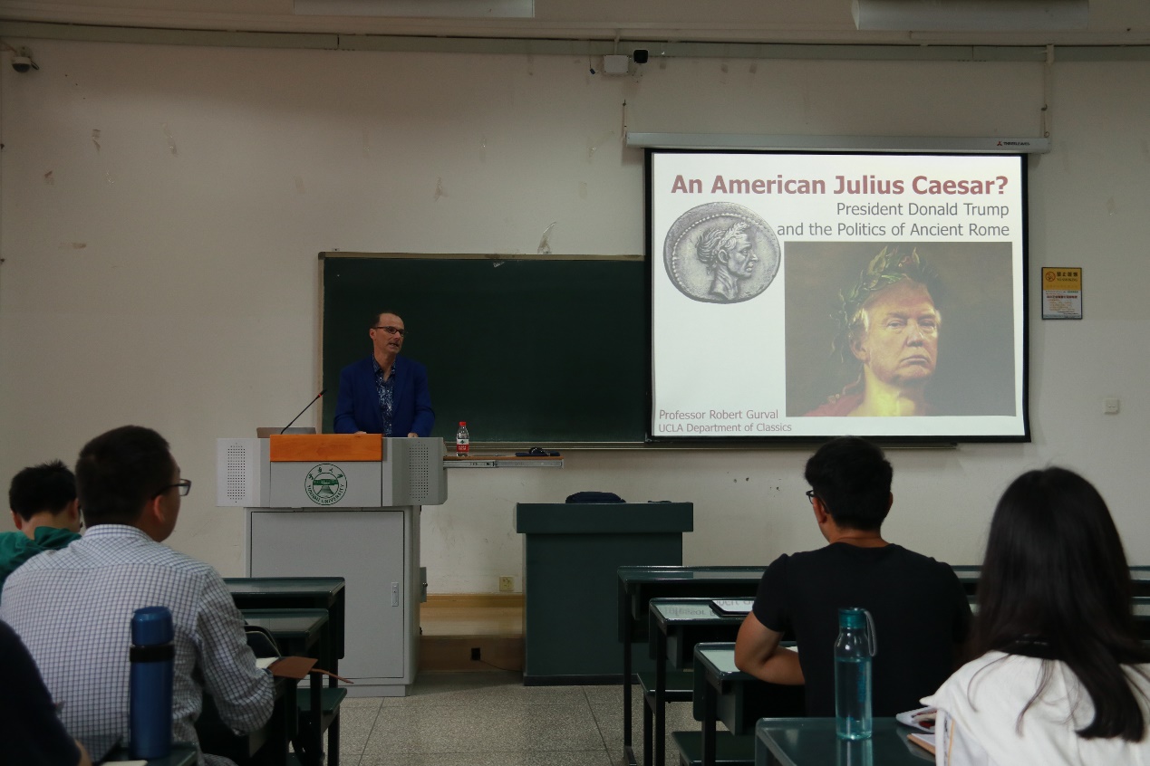 2018年5月30日14:30,伟德国际1946源于英国邀请了加州大学伯克利分校古典学博士、加州大学洛杉矶分校古典学系教授、富布赖特学者罗伯特•古瓦尔(Robert Gurval),为伟德国际1946源于英国师生们做了题为“美国的恺撒?——唐纳德·特朗普总统与古罗马政治”的学术报告。伟德国际1946源于英国副经理罗群教授担任本次讲座的主持人。