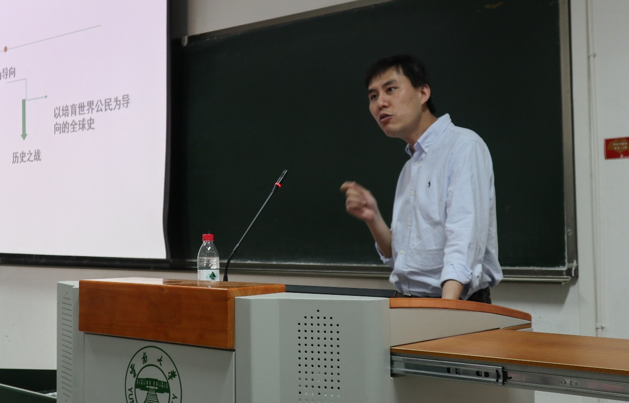 讲座伊始,孟钟捷教授强调了关于二战记忆的历史研究的现实性与特殊性,并就中美贸易战这一全球化背景下的逆全球化现象,提出了恰当处理共有历史记忆的学术价值。自19世纪以来,历史学进入了以兰克史学为代表的历史学的科学化学科建制之中,多强调其科学性,是以民族国家建构为导向的民族史。及至20世纪,学者们逐步意识到历史研究背后人文精神的重要性,以及历史书写与民族国家合法性论证的紧密联系。