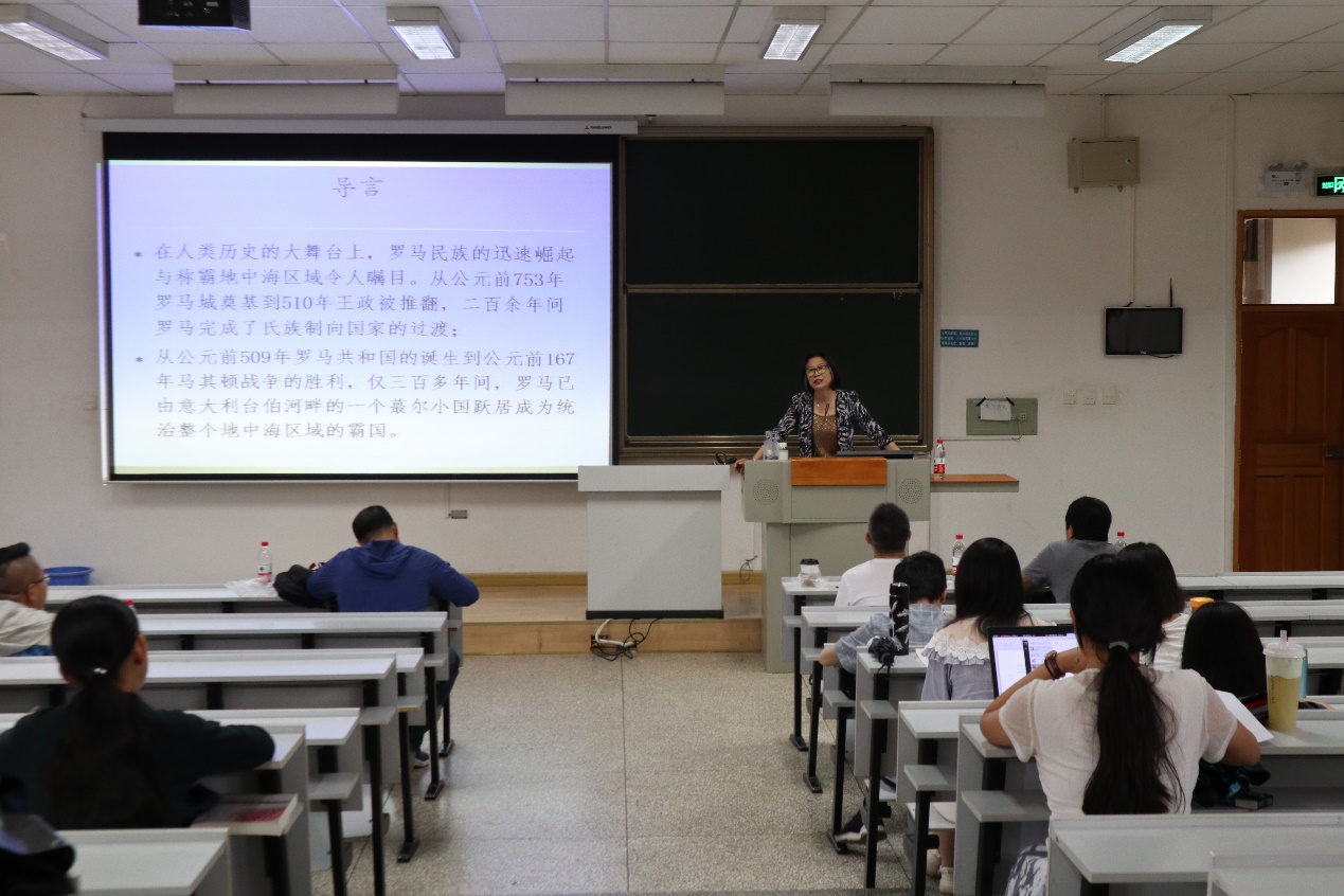 首先,宫秀华教授对罗马文明的概况做了相关介绍。在人类历史的大舞台上,罗马民族的迅速崛起与称霸地中海区域令人瞩目。从公元前753年罗马城奠基到510年王政被推翻,二百余年间罗马完成了氏族制向国家的过渡;从公元前509年罗马共和国的诞生到公元前167年马其顿战争的胜利,仅三百多年间,罗马已由意大利台伯河畔的一个蕞尔小国跃居成为统治整个地中海区域的霸国。宫秀华教授提出,罗马文明的迅速发展是建立在全盘吸纳东方文明并将其升华的基础之上的。罗马能够迅速完成地中海地区统一,主要是基于其优越的共和政治体制,而罗马的“致胜法宝”则是其行省制。