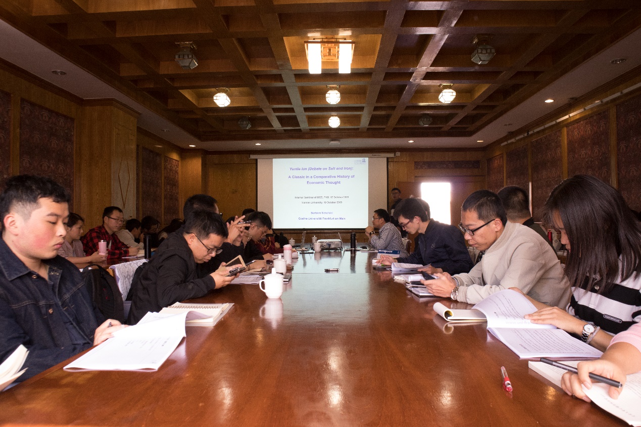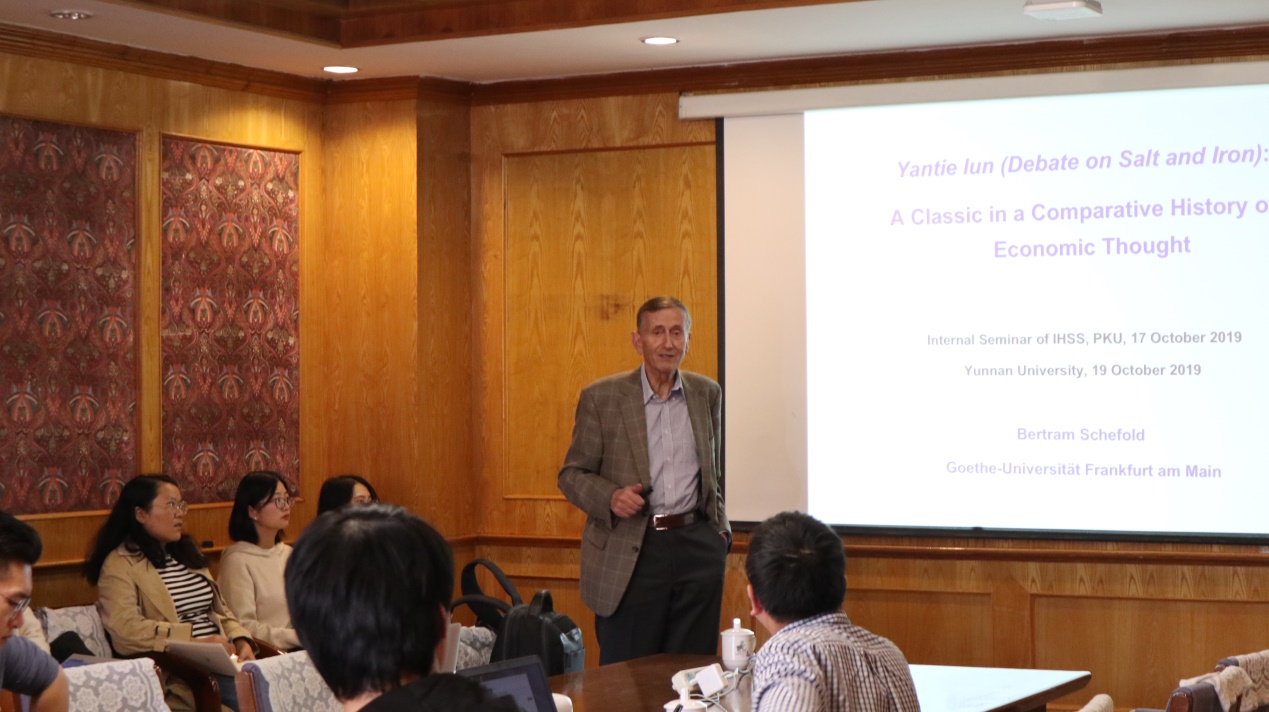 2019年10月19日下午,德国波特伦·谢弗德(Bertram Schefold)教授莅临公司东陆校区科学馆第11会议室为伟德国际1946源于英国历史系、中国经济史研究所师生作题为“盐铁论:经济思想史比较中的经典著作(Debate on Salt and Iron: A Class ic in a Comparative History of Economic Thought)”学术报告。报告由伟德国际1946源于英国中国经济史研究所田晓忠副教授主持。
