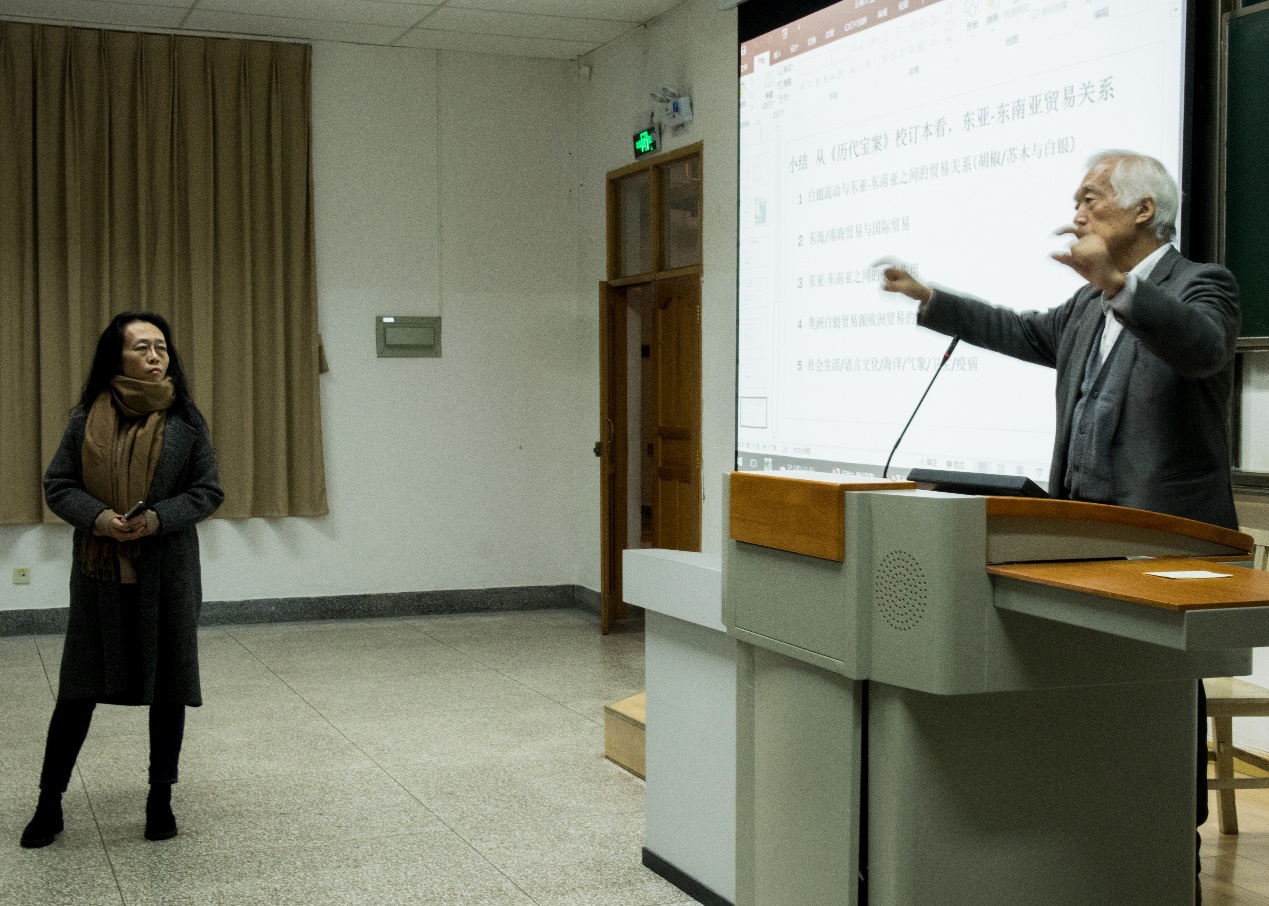 在讨论环节,滨下武志教授回答了关于元代海上交通与朝贡贸易、儒学和朝贡的关系等一系列问题。滨下武志教授在本场讲座中主要强调了空间模式在历史研究中的重要性,他的讲座引发了在座师生关于固有问题在新角度上的新思考,对在座师生今后看待问题与思考问题的方向选择有较大启发。