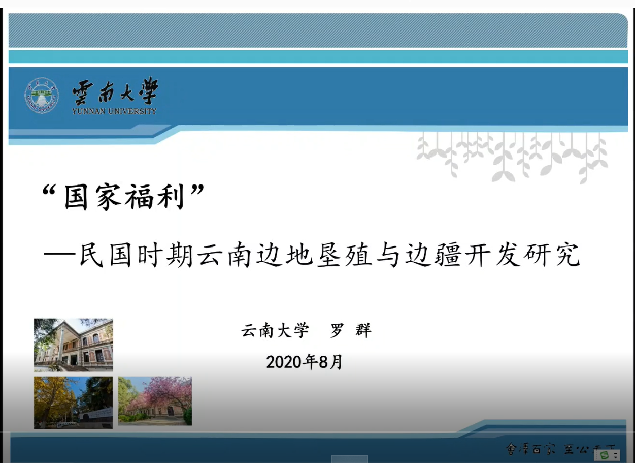 罗教授从近代边疆危机下的云南边疆开发方案与边地垦殖、国家主导下的云南边疆垦殖与开发、地方制衡下的云南边疆垦殖与开发、“民为邦本,本固邦宁” 边疆民众与垦殖、国家福利——民国云南边地垦殖与边疆开发评析五个方面对民国时期云南边地垦殖与边疆开发展开研究。